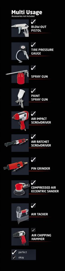 2,5 PS, Ansaugfilter, Druckminderer mit Schnellkupplung, Rückschlagventil, Sicherheitsventil, Entwässerungsventil und Schauglas zur Ölstandskontrolle 10 Jahre Garantie gegen Durchrostung des Kessels