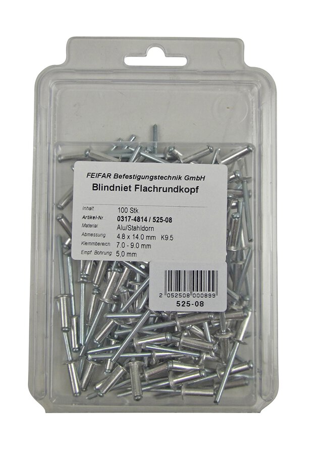 100 Stahl-Blindnieten 3,2 x 8 mm