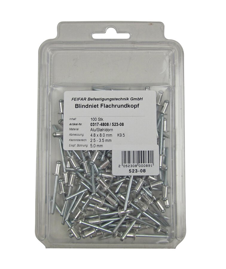 100 Stahl-Blindnieten 3,2 x 8 mm