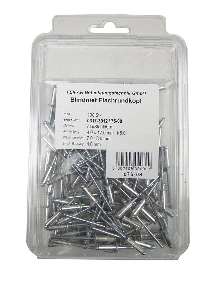 100 Stahl-Blindnieten 3,2 x 8 mm