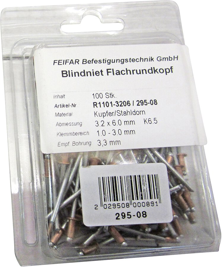 FEIFAR 100 Kupfer-Nieten 3,2 x 6 mm