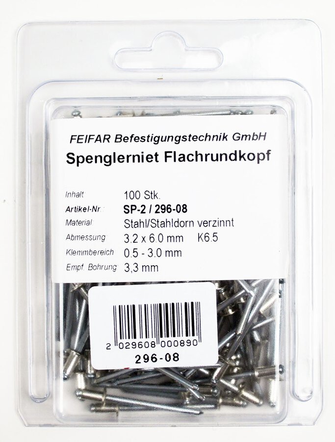 100 Stahl-Blindnieten 4 x 8 mm