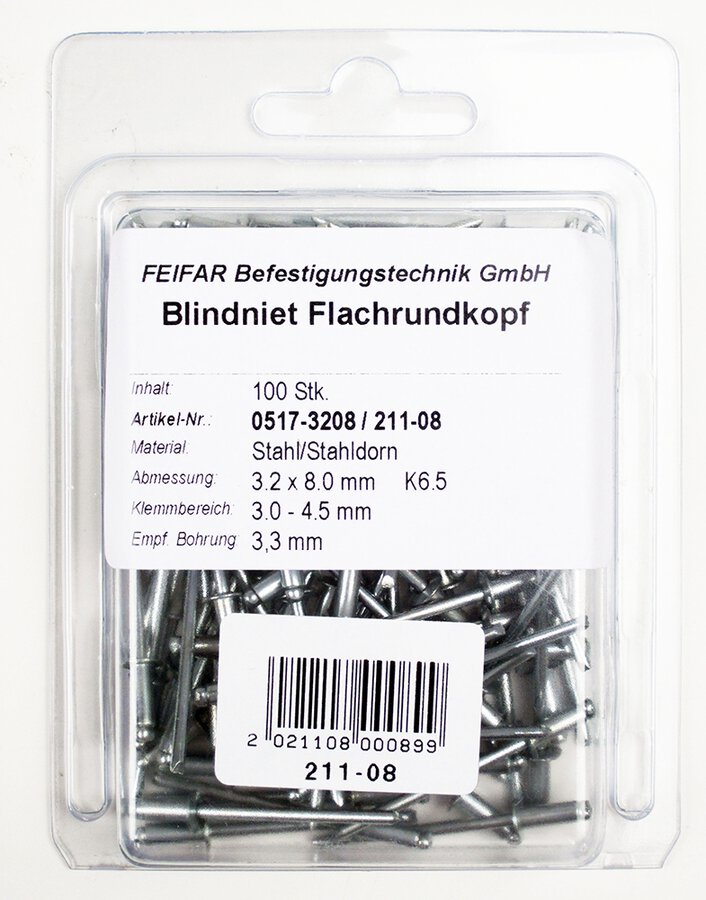 100 Stahl-Blindnieten 4 x 8 mm