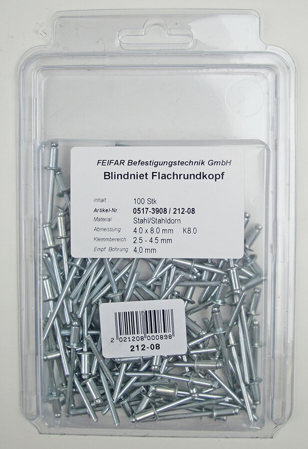 100 Stahl-Blindnieten 3,2 x 8 mm