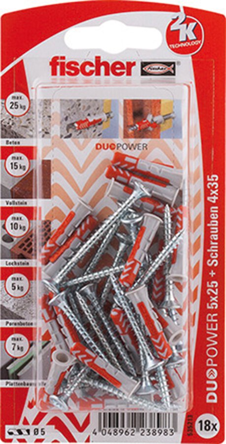 4 Dübel + Schrauben Duopower 10 x 50 mm