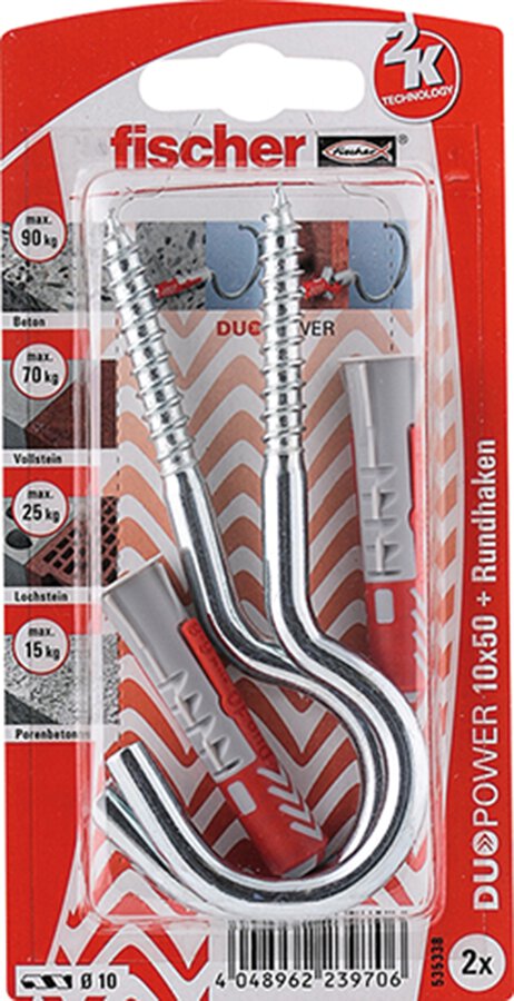 2 Dübel + Winkelhaken Duopower 10 x 50 mm