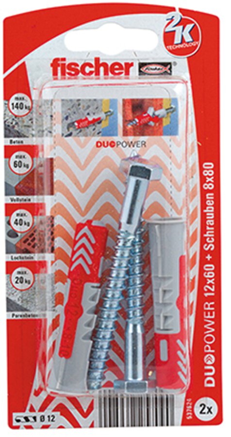 25 Dübel DuoPower 10 x 50 S mit Sicherheitsschraube