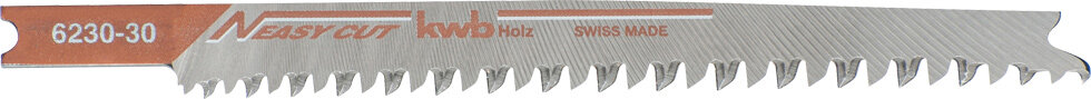 Das kwb EASY CUT Stichsägeblatt zur Holzbearbeitung mit progressiver Zahnteilung und Universal-Schaft (U-Schaft) besteht aus HCS Kohlenstoffstahl. Die gehärtete Zahnung ist präzisionsgeschliffen und geschränkt. Ein aufsteigender Zahnabstand sorgt für ausrissfreie Schnittkanten. Der Einstichzahn hilft beim Eintauchen. Das Sägeblatt ist für Holz, Spanplatten, Tischlerplatten und Faserplatten sowie weiche Kunststoffe geeignet.