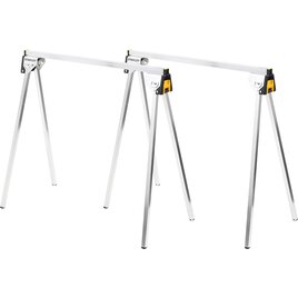 max. Belastung pro Paar: 455 kg (bei gleichmäßiger Verteilung), klappbare Beine garantieren schnellen Aufbau, platzsparendes Verstauen und komfortablen Transport, Anbringen von Schraubzwingen dank Metallschiene möglich, Klickmechanismus ermöglicht den Transport von zwei Böcken in einer Hand!