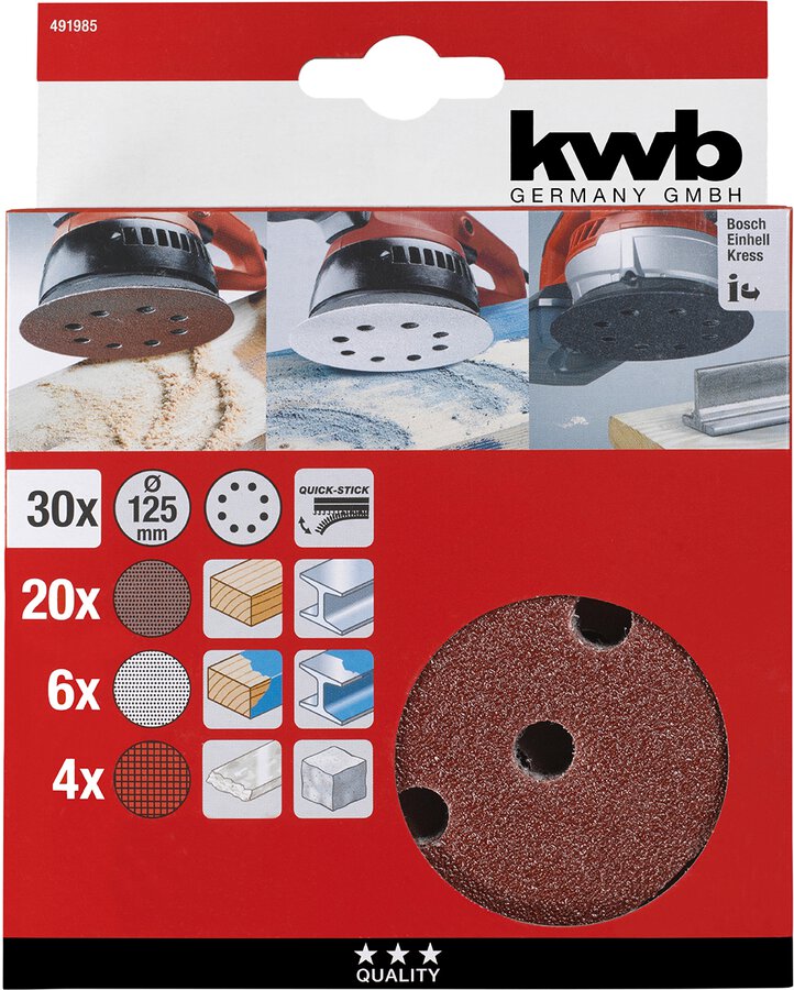 K80 Exzenterschleifer Schleifpapierscheiben 5er-Set mit Universallochung