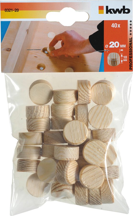 aus Kiefernholz, für die Ausbesserung von Holzfehlern, Astlöchern und als Abdeckzapfen für die Schraubkopfabdeckung zur Verbesserung des Brandschutzverhaltens im Holz- und Holzleimbau