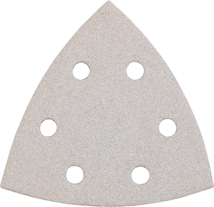 Das Schleifdreieck verfügt über eine Velours-Rückseite zur Befestigung auf Haftstütztellern mit Kletthaftbelag.