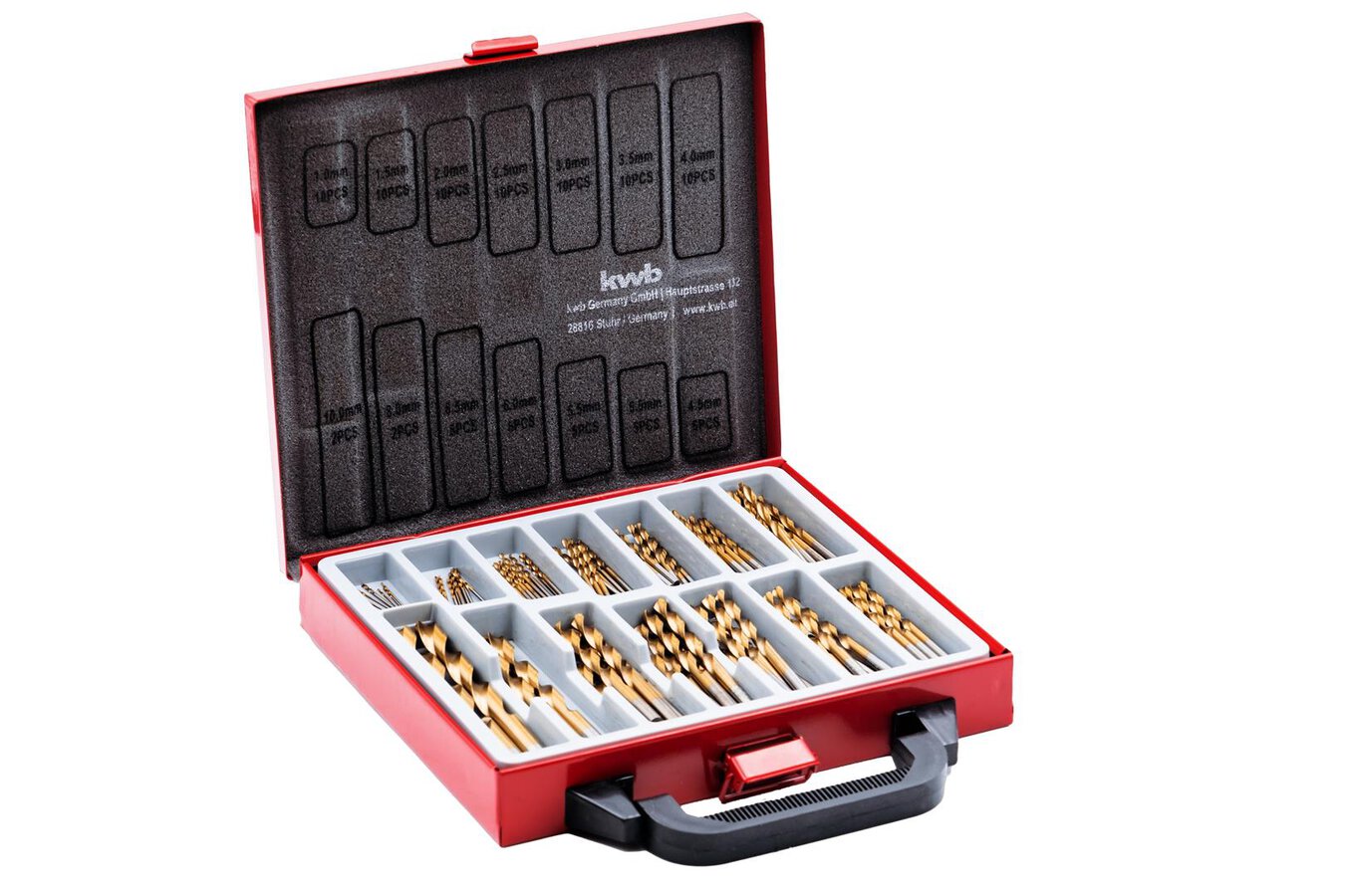 Das 99-teilige Spiralbohrer-Set im geordneten Transportkoffer besteht aus je 10x Bohrern mit einem Durchmesser von 1 / 1,5 / 2 / 2,5 /3 / 3,5 / 4 mm, je 5x Bohrern mit einem Durchmesser von 4,5 / 5 / 5,5 /6 / 6,5 mm, je 2x Bohrern mit einem Durchmesser von 8 / 10 mm. Die selbstzentrierenden Bohrer sind geeignet zum Bohren von legiertem und unlegiertem Stahl, Stahlguss, Temperguss, Sintereisen, Neusilber, Kupfer, Bronze und Hartkunststoffen.