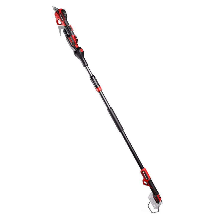 Die Einhell Professional Akku-Astschere GP-LS 18/28 Li T BL-Solo ist ein Must-have für jeden professionellen Gärtner und leidenschaftlichen Hobbygärtner. Sie ist Mitglied der Power X-Change Familie, in der Akkus, Ladegeräte und Systemgeräte flexibel miteinander kombiniert werden können. Angetrieben wird das Gerät von einem Einhell Brushless Motor. Dieser bürstenlose Motor bietet mehr Kraft und eine längere Laufzeit als herkömmliche Kohlebürsten-Motoren. Nach einer Online-Registrierung gelten 10 Jahre Garantie auf den Brushless-Motor. Das 2-in-1-Gerät ist sowohl handliche Astschere, als auch Teleskopschere und kann bis zu 28 mm dicke Äste schneiden. Der Aluminium-Teleskopstiel kann für Arbeiten in Höhen bis zu 3,8 Meter stufenlos von 1 bis 1,6 m verstellt werden. Der Schneidkopf der Teleskop-Astschere kann in 7 Positionen geschwenkt und per integriertem Metallhaken kann abgeschnittenes Geäst problemlos heruntergezogen werden. Die Schnittkapazität kann, wenn die Astschere ohne Teleskopstiel genutzt wird, per Knopfdruck auf 14 mm für den schnellen Schnitt von dünnen Zweigen oder auf 28 mm für Äste mit bis zu 28 mm Durchmesser eingestellt werden. Für den langlebigen Einsatz und effiziente Schnittarbeiten sorgen die hochwertigen, scharfen Bypass-Klingen aus SK5-Stahl. Mithilfe des integrierten Kugeldruckölers können die Klingen für einen maximal langlebigen Einsatz geschmiert werden. Zum sicheren Transport und für die optimale Aufbewahrung ist die Astschere mit einem Verriegelungsschalter für die Klingen ausgestattet und wird mit einer Kunststoffabdeckung geliefert. Per Gürtelclip lässt sich die Akku-Astschere zur schnellen Zwischenlagerung am Gürtel befestigen und dank kompakter Form mit ergonomischem Handgriff mit Softgrip liegt das handliche Gartengerät angenehm in der Hand. Zum Schutz des Akkus ist der Teleskopstiel mit einem Metallbügel ausgestattet. Die Einhell Professional Akku-Astschere GP-LS 18/28 Li T BL-Solo wird ohne Akku und ohne Ladegerät geliefert. Diese sind separat erhältlich.