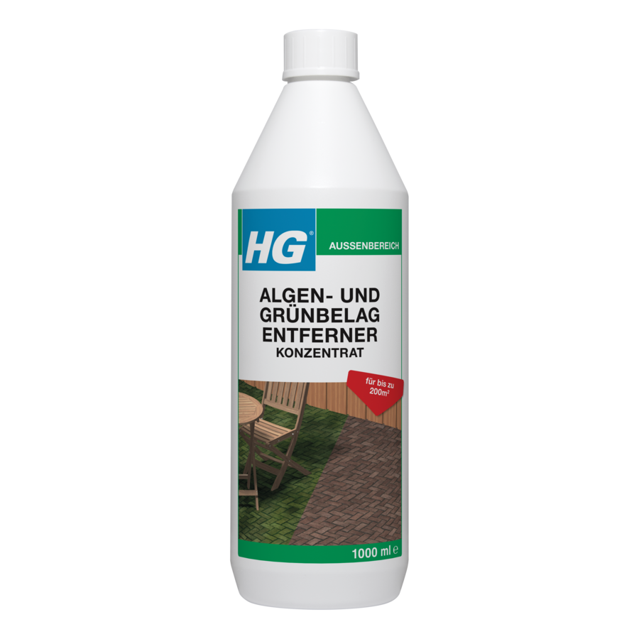 HG Algen- und Grünbelag-Entferner Konzentrat entfernt die bekannten graugrünen Schleier, oder besser gesagt Algengewächs, von Terrassen, Pfaden, Mauern, Dächern, Holzschwellen, Terracotta-Töpfen, usw. Nach dem Auftragen ist das Algengewächs nach 36 Stunden verschwunden. Der Reiniger setzt sich im Untergrund fest, wodurch das Material für ein paar Monate gut gegen Algengewächs geschützt ist.