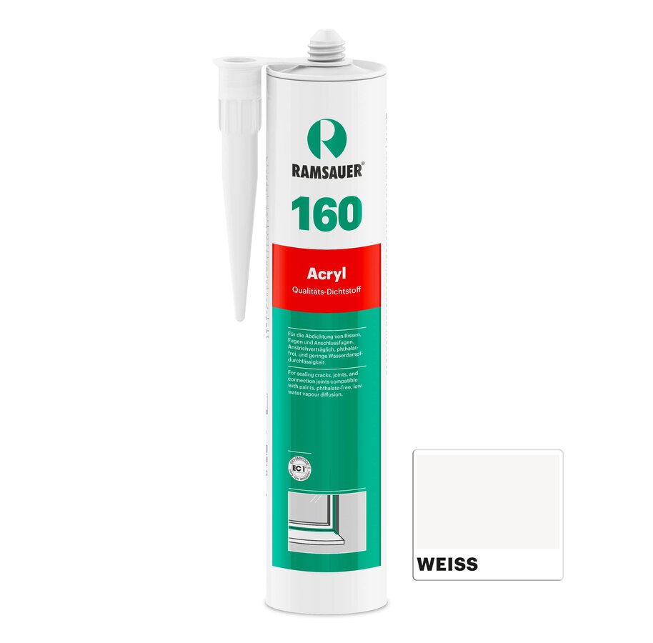 Die gebrauchsfertige plastoelastische 1K-Fugendichtmasse auf Acrylat-Basis haftet besonders gut auf Beton, Putz, Mauerwerk und Holz und ist daher perfekt geeignet für Arbeiten im Innenausbau. Überall dort, wo Fugen oder Anschlüsse mit mittlerem Dehnungsanspruch abzudichten sind, spielt dieser Dichtstoff seine gesamte Stärke aus. Das trifft zum Beispiel auf Anschlussfugen zwischen Holzfenster und Mauerwerk oder Anschlüsse an Beton- und Zementbauteile zu. 160 Acryl bildet bereits nach einer Stunde eine Oberflächenhaut.