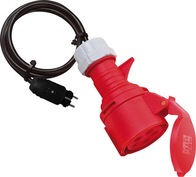 Mit Schutzkontakt Gummistecker (230 V) und CEE-Kupplung (5-polig)