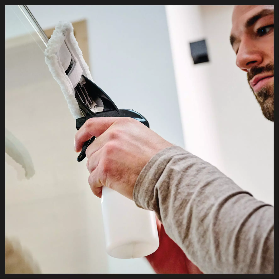 1x Einhell Akku-Fensterreiniger, Mikrofasertuch, Sprühflasche