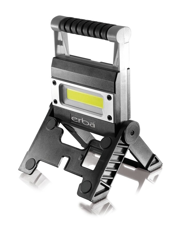 mit klappbarem Standfuß und praktischem Tragegriff. 4 Leuchtstufen (100%/50%/SOS/Warnsignal) Lumen: 1000 lm Farbtemperatur: 6500K inklusive wiederaufladbarem LiPo-ion 18650 3.7V 2200 mAh Akku Akkuleistung: bis zu 5 Stunden, abhängig von der gewählten Stufe Ladezeit: ca 3 Std. inklusive USB-C Ladekabel Schutzklasse: IP44 mit Powerbankfunktion zum bequemen Laden diverser Geräte einfaches Ablesen des Ladezustandes mittels Akkuanzeige Einsatzbereich: Werkstatt/KFZ/Camping/Stromausfall