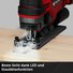 Die Einhell Akku-Stichsäge TE-JS 18/100 Li-Solo ist eine kompakte Säge für präzise Schnitte in verschiedene Materialien. Als Mitglied der Power X-Change-Familie kann sie mit allen Akkus und Ladegeräten der Systemfamilie kombiniert werden. Durch ihre hohe Laufruhe sorgt die Akku-Stichsäge für exakte Schnitte. Für schnellere Schnitte ist der Pendelhub zuschaltbar, durch den sich das Sägeblatt nicht nur vertikal, sondern auch horizontal nach vorn bewegt. Die leistungsstarke Akku-Stichsäge schafft Schnitte bis 100 mm tief in Holz und 12 mm in Stahl sowie Schrägschnitte bis 45° und ist mit einem praktischen Schnittlinienanzeiger und einem LED-Licht zur Ausleuchtung des Schnittbereichs ausgestattet. Dank Drehzahlelektronik kann perfekt auf das Material und die Anwendung abgestimmt gearbeitet werden. Die werkzeuglose Sägeblattaufnahme ermöglicht einen schnellen und einfachen Wechsel des Sägeblatts. Die Stichsäge kann mit allen gängigen T-Schaft-Sägeblättern verwendet werden. Für beste Sicht beim Arbeiten sorgt die Staubblasfunktion und der mitgelieferte Absaugadapter, der zum Beispiel mit einem Nass-Trockensauger mit Ø 36-mm-Anschluss verbunden werden kann. Der im robusten Aluminium-Sägeschuh integrierte Gleitschuh aus Kunststoff schont empfindliche Werkstücke und schützt vor Kratzern. Der Spanreißschutz sorgt für ausrissfreie Schnitte. Für besonders gerade Schnitte kann der mitgelieferte Parallelanschlag an der Stichsäge montiert werden. Zum Lieferumfang gehört ein Stichsägeblatt für Holz. Die Lieferung erfolgt ohne Akku und Ladegerät. Diese sind separat erhältlich, zum Beispiel als praktisches Starter-Set.