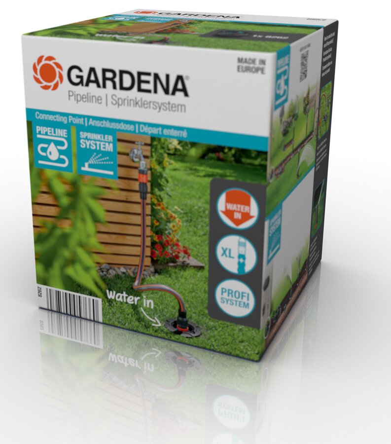 Mit der Anschlussdose von GARDENA wird eine Verbindung vom Wasserhahn zu den unterirdisch verlegten Rohren der GARDENA Pipeline sowie des GARDENA Sprinklersystems hergestellt. Damit bildet die Anschlussdose den Startpunkt der Systeme. Sie ist mit einem Profi-System Hahnstück ausgestattet, das einen hohen Wasserdurchfluss ermöglicht und dadurch ideal zur Wassereinspeisung in das System ist. Sobald die Verbindung steht, zeichnet sie sich durch ihre hohe Funktionssicherheit aus. Sehr nützlich ist ebenfalls der versenkbare Kugeldeckel, der beim Öffnen im Inneren der Anschlussdose verschwindet und daher zum Beispiel beim Rasenmähen kein Hindernis darstellt. Durch das enthaltene Schmutzsieb ist die Anschlussdose geschützt vor Schmutz, Gras oder Laub. Es lässt sich herausnehmen und unter fließendem Wasser leicht ausspülen. Außerdem besteht die in Europa hergestellte Anschlussdose aus hochwertigen Materialien, wodurch sie robust ist.