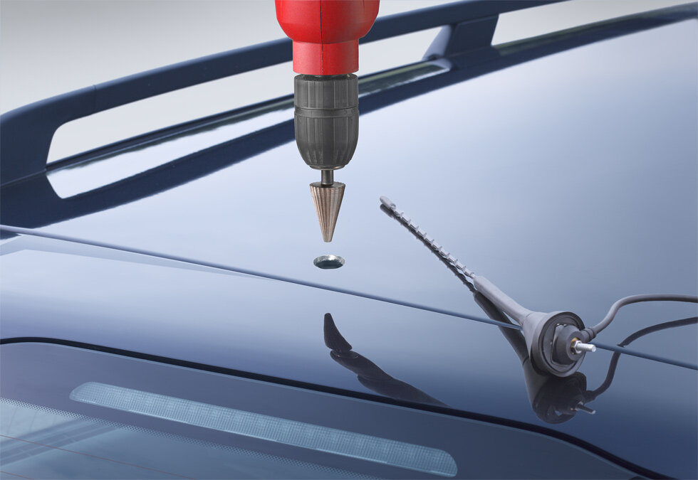 Der kwb Antennenfräser besteht aus Werkzeugstahl. Mit dem Fräser lassen sich stufenlose Bohrungen von kleinen bis großen Durchmessern erstellen. Neben dem Einsatz in dünnen Nichteisenmetallen, Kunststoffen und Holz ist der Fräser ideal für den Einbau von Antennen im KFZ-Bereich geeignet.