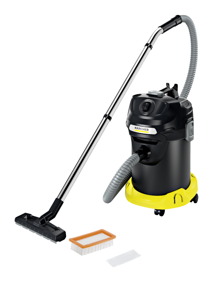 Beseitigt Asche komfortabel ohne Schmutzkontakt: der lang anhaltend saugstarke Asche- und Trockensauger AD 4 Premium mit 17-l-Metallbehälter und Filterabreinigung, stoßfester Umlaufschutz, Komfortabler Haltegriff am Behälter, Kabelhaken, Anlehnposition, Zubehöraufbewahrung am Gerät