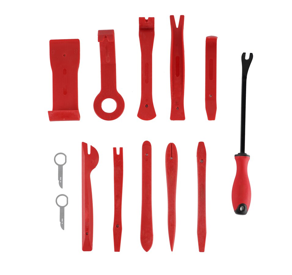 11 Zierleistenkeile 2 Demontagewerkzeuge für Kfz-Radio 1 Demontagewerkzeug mit Griff für Befestigungsclips