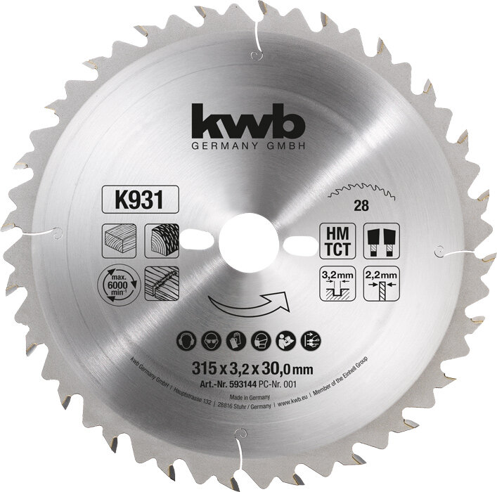 Das kwb Kreissägeblatt für Brennholz besteht ist hartmetallbestückt und verfügt über eine grobe Zahnung mit Zahnstellung Null. Der Grob-Zahn sorgt für einen schnellen, groben Schnitt. Das Blatt ist ideal für Vollholz, Tischlerplatten, Spanplatten, Hartfaserplatten und glasfaserverstärkte Kunststoffe geeignet.
