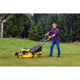 Großer Garten? Großer Rasenmäher! Und zwar der MD560E von ZGONC. Dieser Rasenmäher mit seinem leistungsstarken 224 cm³ 4-Takt-Benzinmotor mit 6 PS / 4,4 kw ist der Traum jedes Gartenbesitzers mit einer Rasenfläche bis 2200 m². Dank Komforthandgriff, großer, kugelgelagerter Laufräder und zuschaltbarem Radantrieb lässt sich auch ein hügeliger Garten oder ein grasbewachsener Hang ganz einfach mähen. Richtig Zeit sparen kann man durch die XXL-Schnittbreite von 56 cm, die ein effizientes Rasenmähen in kürzerer Zeit ermöglicht. Der 65 L Fangkorb trägt ebenfalls zur Reduzierung der Mähzeit bei, da er viel Platz für gemähtes Gras bietet und seltener entleert werden muss als kleinere Fangboxen. Mit seinem professionellem GT-Getriebe für extra hohes Drehmoment und besonders hohe Leistung, arbeitet sich der MD560E auch durch hohes Gras. Über die zentrale 7-fach Schnitthöhenverstellung lässt sich mit einem Handgriff eine Endhöhe des Rasens von 25 -75 mm festlegen. Ob kurzer Zierrasen oder hoher Schattenrasen, Erstschnitt oder letzter Schnitt im Jahr – der MD560E erfüllt individuelle Anforderungen und heraus kommt ein professionelles Ergebnis. Wer lieber mulcht statt mäht wird ebenfalls Freude an diesem Rasenmäher haben. Mithilfe der integrierten Mulchfunktion wird der Grasschnitt so weit zerkleinert, dass er als Dünger auf dem Rasen verbleiben kann. Über den seitlichen Auswurf wird der Mulch gleichmäßig verteilt und gleichzeitig verhindert, dass er auf Schuhen und Beinen landet. Abschließend wird das Stahlgehäuse des Rasenmähers über einen Wasseranschluss und die integrierte Reinigungsfunktion blitzschnell von Grasresten befreit. Mit doppelt eingeklapptem Handgriff lässt er sich bis zum nächsten Gebrauch und über den Winter platzsparend lagern.