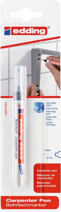 Dank des sehr langen und schmalen Mundstücks ist der Marker besonders geeignet als Montagehilfe bei sehr schwer zugänglichen Stellen wie z.B. Bohrlochmarkierung bei Regalanbringung.