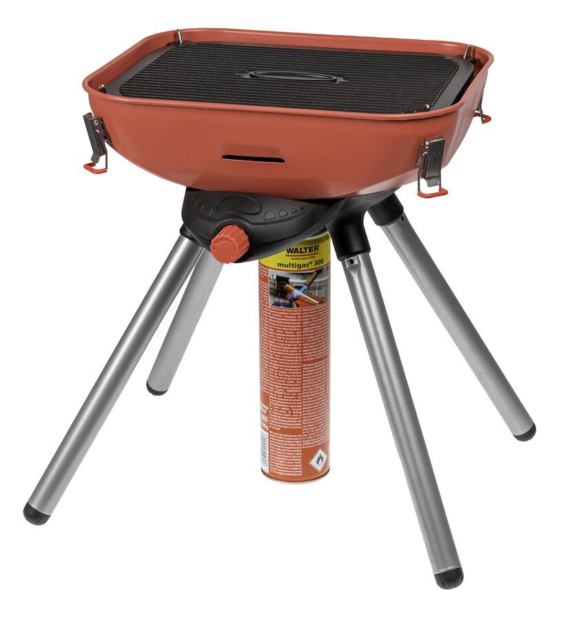 ist der perfekte Begleiter in jedem Camping Urlaub, wo Gewicht und Platz gespart werden muss, aber trotzdem ein hervorragendes Grill Ergebnis erzielt werden soll. Zudem eignet er sich auch super auf kleinen Grillfeiern in Parks oder zum Picknick. Der Walter Party-Gasgrill wird mit einer Gaskartusche betrieben. Diese lässt sich ebenso leicht wie die Standfüße mit Schraubverbindung montieren. Mit Hilfe der verbauten Piezo Zündung kann der Grill problemlos angefeuert werden und die Flammengröße ist sogar stufenlos regelbar. Im Lieferumfang ist zahlreiches Zubehör enthalten. Neben einem stabilen Deckel, einem Kochgefäßhalter, Grillrost, einer wendbaren Grill- und Bratplatte, befinden sich im Lieferumfang auch 2 Handgriffe und ein Wärmeverteiler. Der Deckel kann nicht nur als Deckel, sondern auch als Garschale oder Topf verwendet werden.