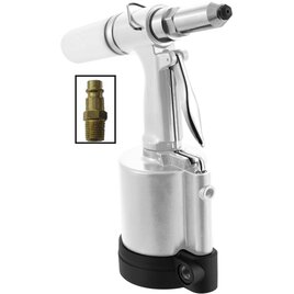 hydraulisch-pneumatisches Gerät zum zeit- und kraftsparenden Verschießen der gebräuchlichsten Nietgrößen: 2,4 / 3,2 / 4 / 4,8 mm, mit 4 Einsätzen für Nieten-Ø von 2,4 bis 4,8 mm, 1/4“-Anschlussgewinde