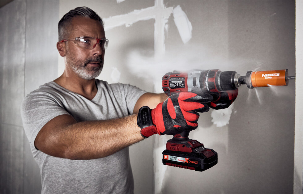 Die kwb Easy Cut Lochsäge wurde für den universellen Heimwerker- und Profieinsatz entwickelt. Durch ihre diamantgeschliffenen und hochtemperaturgelöteten Hartmetallschneiden eignet sie sich perfekt für harte Materialien. Eine extragroße Schnitttiefe bis zu 60 mm reicht für ein breitgefächerte Anwendung im Innenausbau, bei Elektriker- und Installationsarbeiten, beim Montieren von Küchenarbeitsplatten und -tischen sowie sämtlichen Holzarbeiten und das ohne verbrannte Schnittkanten. Das ausgeschnittene Material lässt sich durch die weiten Schlitze sauber entfernen. Die kwb Easy Cut Lochsäge ist in folgenden Durchmessern erhältlich: 20, 25 und 35 mm mit 53 mm Schnitttiefe, 40, 45, 50, 60, 68, 75, 80, 85, 90 und 105 mm mit 60 mm Schnitttiefe. Die Aufnahme an Bohrmaschine, Bohrhammer ohne Schlagwerk, Standbohrmaschine und Akkubohrer erfolgt durch Sechskantschäfte oder SDS-Schäfte. Darüber hinaus lässt sich ein 6-mm-Zentrierbrohrer (HSS oder HM-beständig) integrieren. Die Schäfte sind in vier Varianten erhältlich: SDS-Schaft für Lochsägen-Durchmesser von 20...25 mm, SDS-Schaft für Lochsägen-Durchmesser von 35...105 mm, Sechskantschaft für Lochsägen-Durchmesser von 20...25 mm, Sechskantschaft für Lochsägen-Durchmesser von 35...105 mm. Beim Schneiden verbrennen die Werkstückkanten nicht, da die extra großen Spanräume für eine schnelle Spanabfuhr sorgen. Somit schneidet sie präzise und schnell in viele Werkstoffe. Besonders tiefe Schnitte in Holz lassen sich aufgrund dieser schnellen Spanabfuhr besonders gut realisieren. Die kwb Easy Cut Lochsäge schneidet eine Vielzahl von Materialien: Weich- und Hartholz (auch kunststoffbeschichtet), MDF-, OSB- und Spanplatten, Laminat (auch HPL), Kunststoffe, Leichtbauplatten, PVC-Platten, Gipskarton, Faserzement, Gipsblöcke, Gasbeton, Holzfaserdämmplatten, Ziegel, Klinkersteine und Mauerwerk. Die kwb Easy Cut Lochsäge ist damit für Installationsarbeiten, wie z. B. Steckdosen- und Verteilerdoseneinbau sowie Rohrverlegung bestens geeignet.