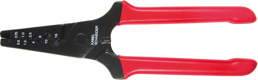 zum lötfreien Anpressen von Adernendhülsen 0,5 / 0,75 / 1 / 1,5 / 2,5 / 4 / 6 / 10 und 16 mm, mit Kabelschneider