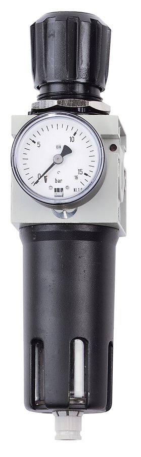 Vereint die technischen Vorteile des Druckreglers und des Kondensatabscheiders mit Filter in einer noch kompakteren Baugröße. Montage unabhängig von Durchflussrichtung dank beidseitiger Anschlussmöglichkeit für Manometer. Regelbereich 0–12 bar