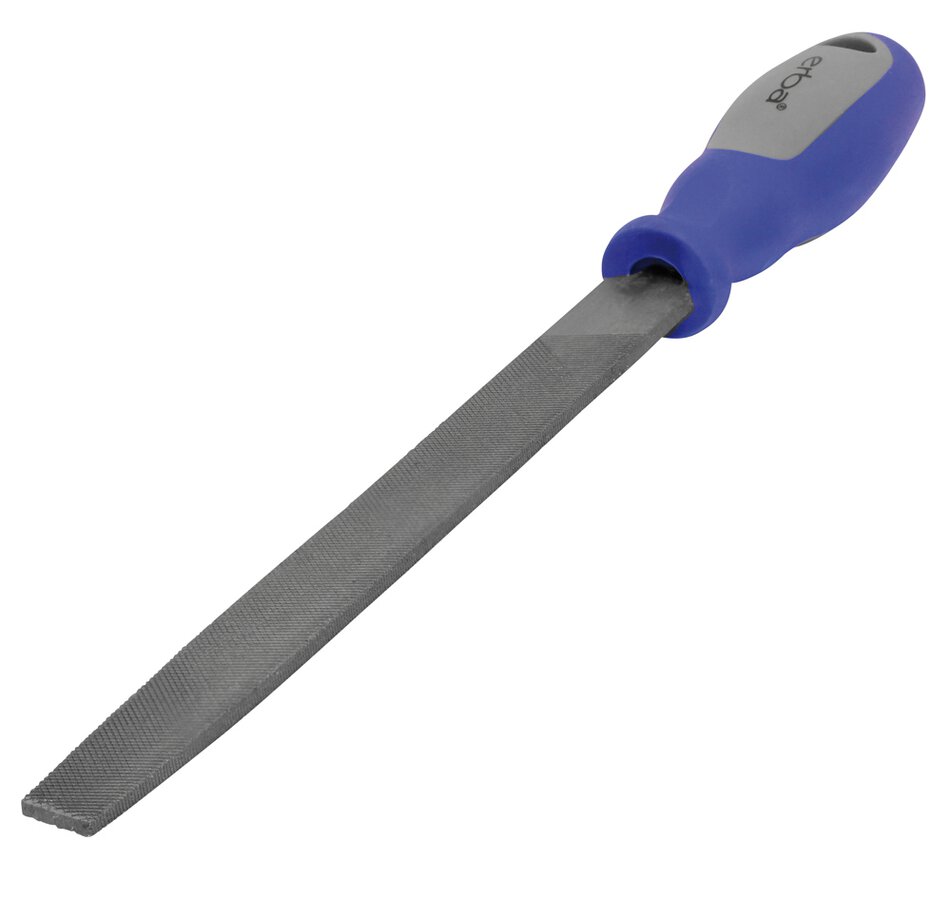 Flachfeile, ERBA, 200 mm, Bastard, mit ergonomisch geformtem 2-Komponentengriff aus Weichkunststoff für guten Halt, inkl. Hängeloch