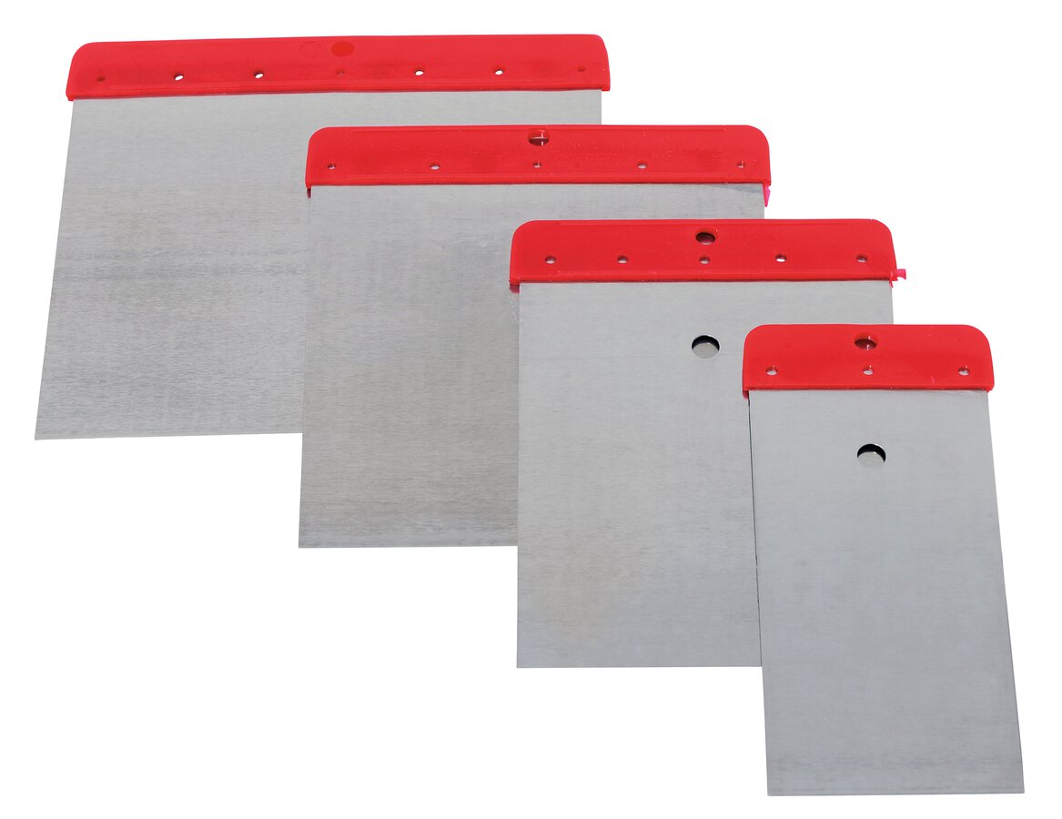 Flächenspachtel-Set, 4-tlg. Kunststoffrücken mit Aufhängeloch Made in Germany Bestehend aus je 1 Stk. Flächenspachtel Breite 50, 80, 100 und 120 mm