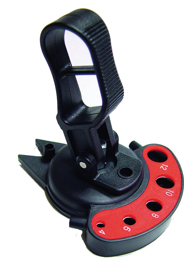 • mit Saugnapf für sichere und präzise Bohrführung - ein Verlaufen der Bohrer beim Ansetzen wird verhindert