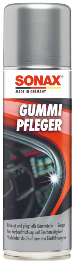 reinigt und pflegt alle Gummiteile am Auto und hält sie elastisch, verlängert die Lebensdauer und frischt die Farben auf, auch für Reifen und Fußmatten, verhindert im Winter das Festfrieren der Fenster- und Türdichtungen