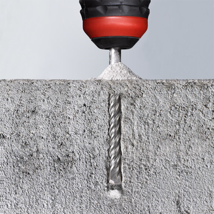 Hammerbohrer, Aufnahmeschaft SDS plus, selbstzentrierende Bohrspitze, hochtemperatur gelötet, mehrfach Spirale für optimalen Bohrmehltransport, minimale Wandreibung und minimierte Wärmeentwicklung, vibrationsoptimiert, zertifiziert durch die deutsche Prüfgemeinschaft Mauerbohrer (PGM), nach Anforderung des deutschen Instituts für Bautechnik.