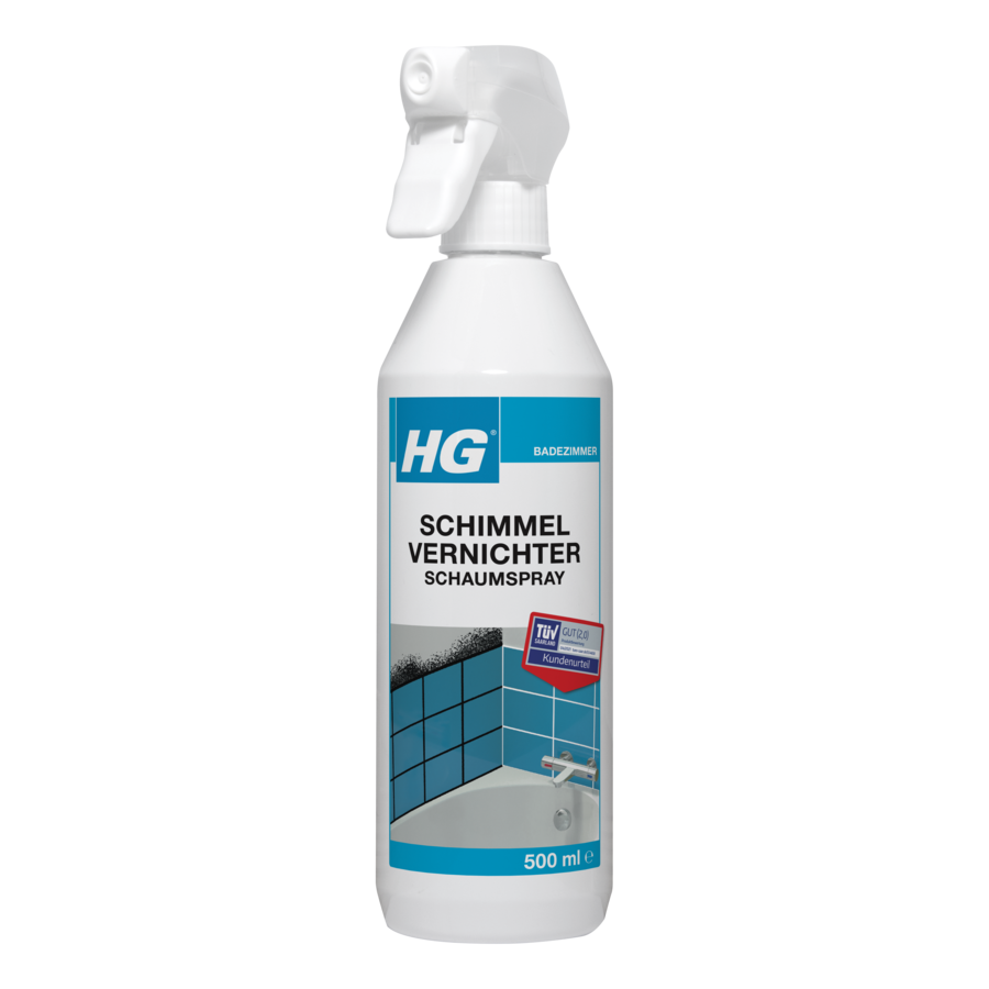 HG Schimmel Vernichter Schaumspray vernichtet sofort alle Schimmel, wodurch die schmutzigen schwarzen Flecken verschwinden. Schimmel-, Feuchtigkeits- und Stockflecken kommen häufig in den Silikonfugen zwischen Badewanne und Fliesen, in Duschkabinen und im Verputz vor. Diese Schraumspray-Variante basiert auf einer einzigartigen Schaumformel und hat einen weniger penetranten Geruch, lässt sich noch genauer auf den Schimmel sprühen und spritzt natürlich auch nicht so leicht. Für die normale Sprayvariante empfehlen wir HG Schimmel-Vernichter.
