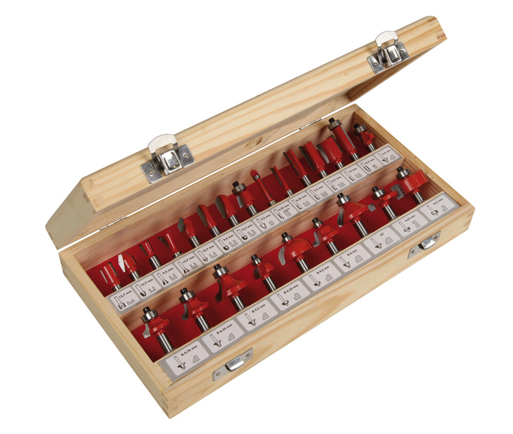 alle Fräser mit 8 mm-Schäften, davon 12 Fräser mit Lager, 3,2 - 19 mm