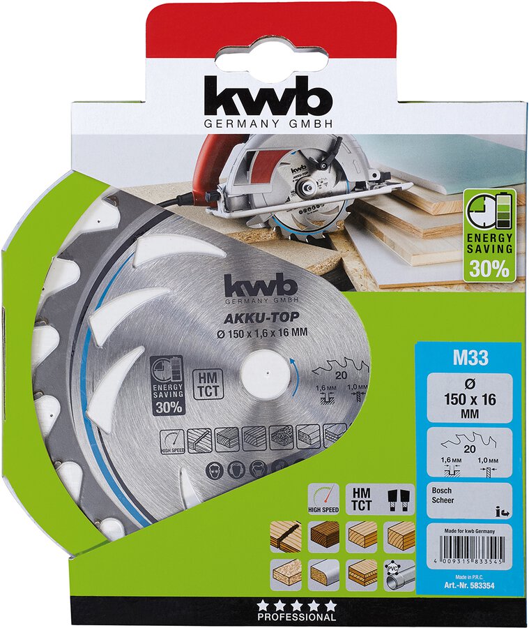 präzise, saubere Schnitte, mit Spannuten für höhere und schnellere Arbeitsleistung, hartmetallbestückt, für Akku- und Handkreissägen, kabelgebundene Maschinen