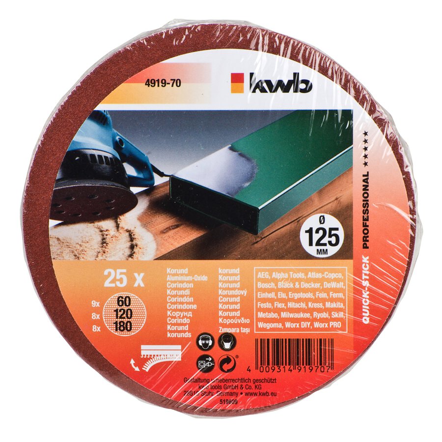5 QUICK-STICK Schleifscheiben Ø 125 mm, K 40, HOLZ & METALL, Edelkorund