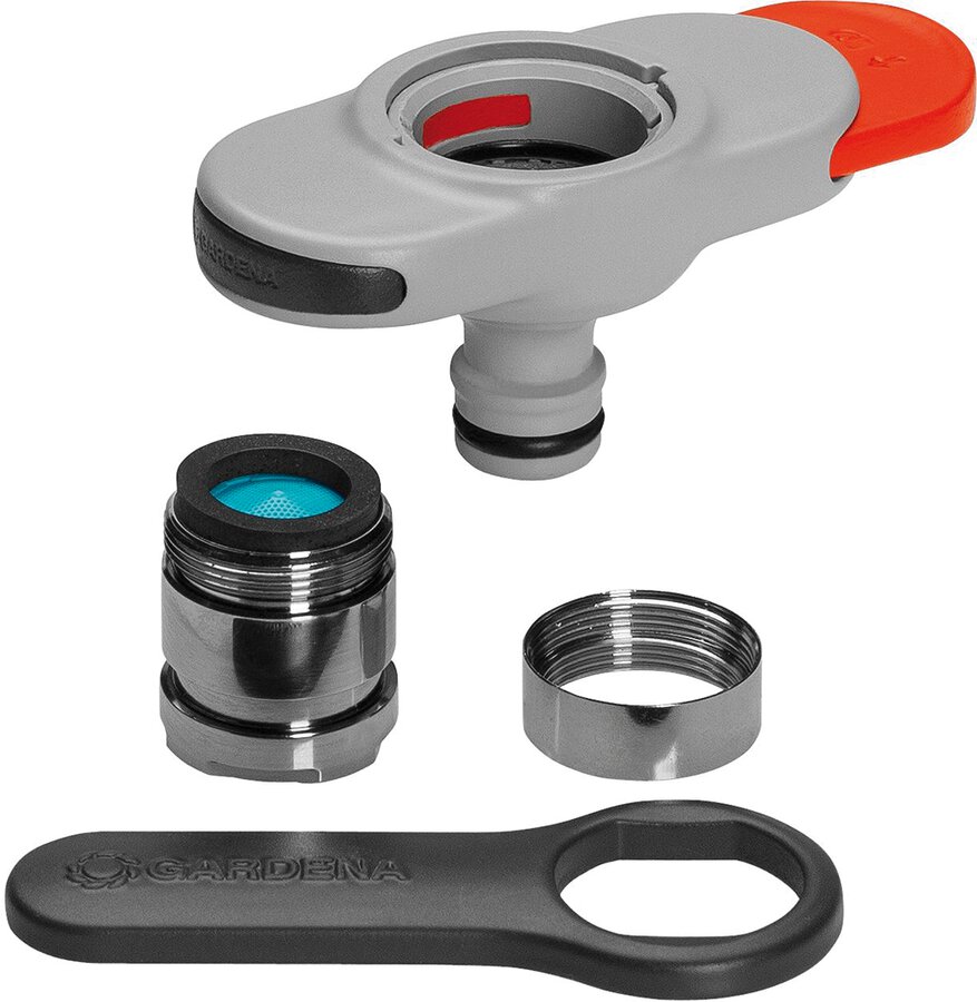 ermöglicht, einen Wasserschlauch an Wasserhähne in Küche oder Bad anzuschließen, mittels Schieber leicht anzubringen, im Gewinde-Adapter ist ein Perlstrahl-Einsatz enthalten, so dass der Hahnverbinder einfach am Wasserhahn verbleiben kann, mit 2 Adapern und Schlüssel für das einfache Anbringen und Lösen des Metalladapters, ohne den Wasserhahn zu verkratzen