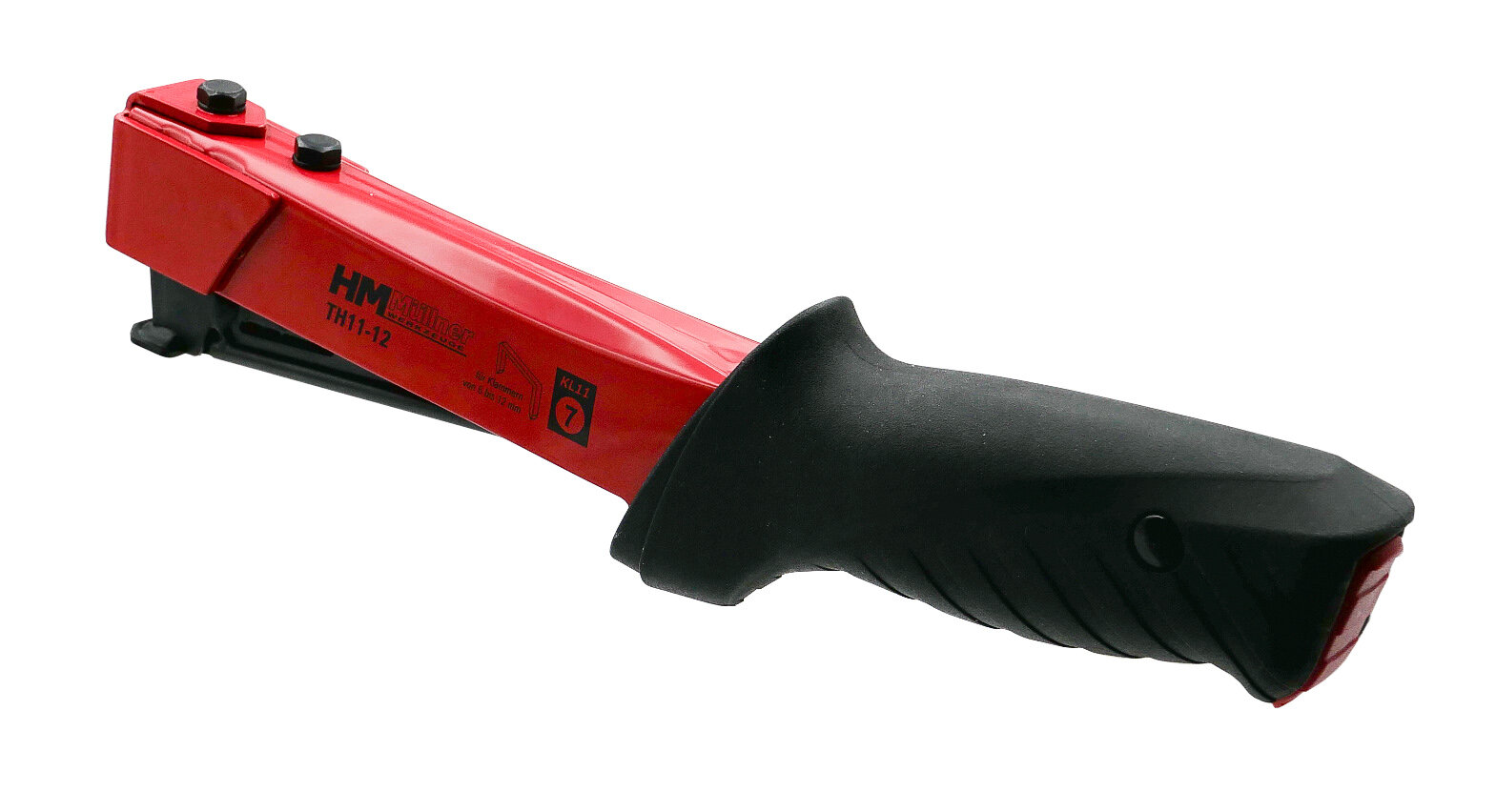 Hammertacker„Professional“ Hammertacker in hochwertiger, robuster Vollmetallausführung für Bau und Handwerk ergonomischer Softgriff einfaches und schnelles Nachladen hohe Klammernaufnahmekapazität (ca. 170 Stück) Klammerfüllstandsanzeige keine losen Teile - alle Teile am Gerät verbaut und unverlierbar einfachste Handhabung Einsatzbereich: Folien, Dachpappe, Dämmmaterial, Bitumenschindeln... Geeignet für Klammern KL11 (Typ 7), Länge 6–12 mm