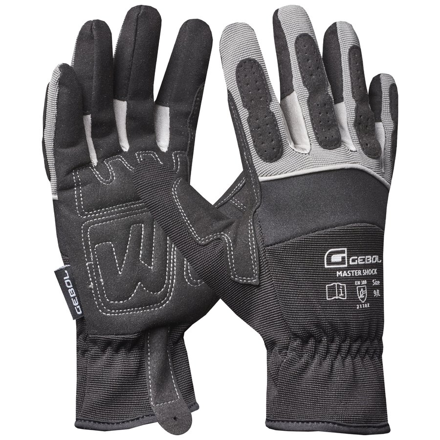 • Der Master Shock zählt zu den GEBOL Premium-Handschuhen für den anspruchsvollen Anwender. Gepolsterte und verstärkte Handinnenflächen sowie zusätzliche Verstärkungen an den beanspruchten Stellen schützen die Hände bei allen schweren Arbeiten wie z. B. Montage-, Kraftfahrzeug- und Reparaturarbeiten. Trotz besonders guter Schutzeigenschaften bietet der Master Shock ein hohes Maß an Tragekomfort.