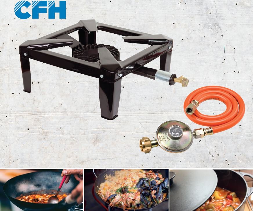 -für Propan- und Butangasflaschen ( 5- und 11 kg Flaschen)-Stabiler und fester Stand -für Töpfe mit einem Durchmesser von 25 cm bis max. 45 cm -Verbrauch ca 640 g/h -Leistung in kW ca 8,8 kW/h -inkl. Druckregler mit einem fest eingestellten Ausgangsdruck (50 mbar) und mit einem Nenndurchfluss von 1,5 kg/h, dieser kann bei Umgebungstemparaturen von -20°C bis + 50°C eingesetzt werden. Er verfügt über eine CE-Zulassung nach EN 16129-ink. Gasschlauch 1,5 m