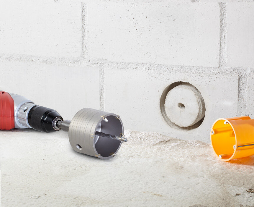 Die kwb HARTMETALL Hohlbohrkrone – mühelos in festes Gestein bohren // Die hartmetallbestückte Hohlbohrkrone von kwb zeichnet sich durch eine lange Lebensdauer und hohe Verschleißfestigkeit aus. Sie ist schlagbohrfest und spezial gehärtet. Bohrungen in Mauerwerk, Naturstein, Kunststein, Beton, Marmor und Ziegel sind dank der spezial verlöteten hitzebeständigen Hartmetallplatten problemlos möglich. Somit ist die kwb HARTMETALL Hohlbohrkrone bestens geeignet für Rohrdurchbrüche, Setzen von Elektrounterputzdosen, Lochbohrungen für Steckdosen und viele weitere Vorhaben. Für den separat erhältlichen Aufnahmeschaft ist ein M16 Gewinde vorhanden.